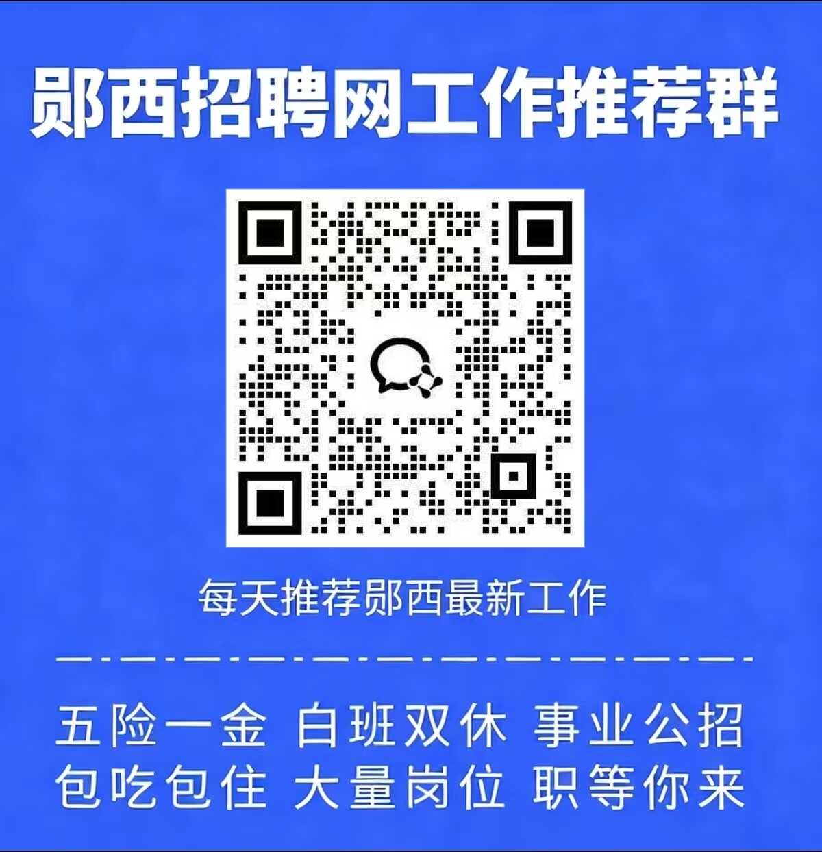 1、添加工作推荐群,每天不定时接受最新郧西本地工作岗位推荐;